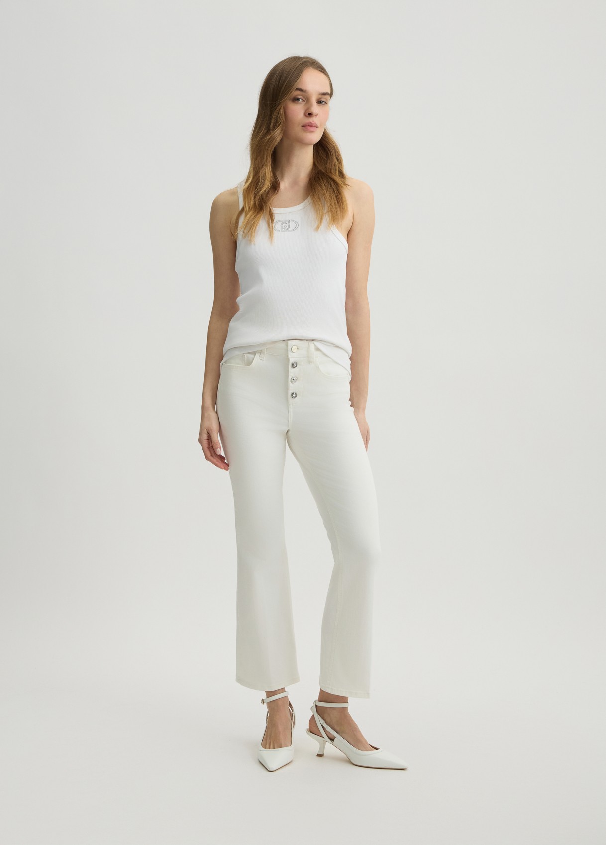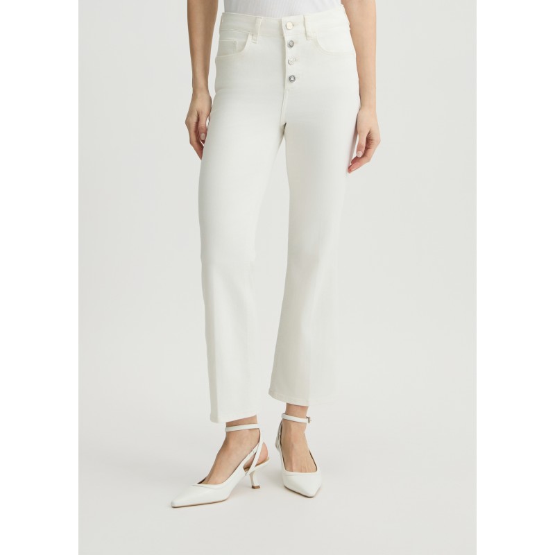 - Pantaloni bootcut bianchi a vita alta