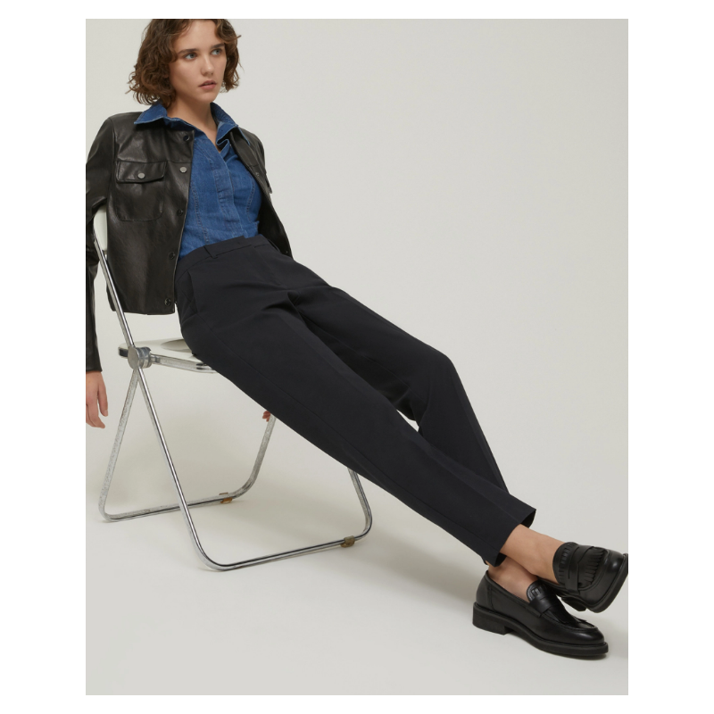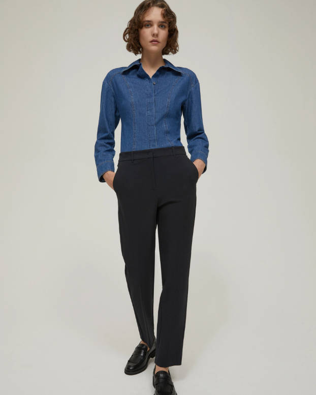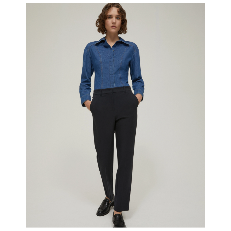 - Taglio slim, linee affusolate al fondo